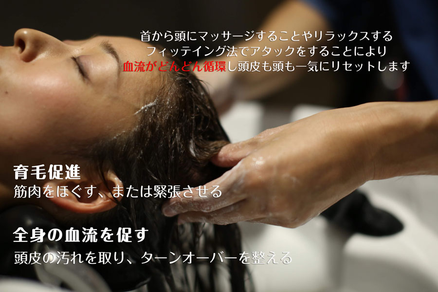 通常のシャンプーと違い、頭皮を強くこすらないスパシャンプーは頭皮を傷めない技術です。